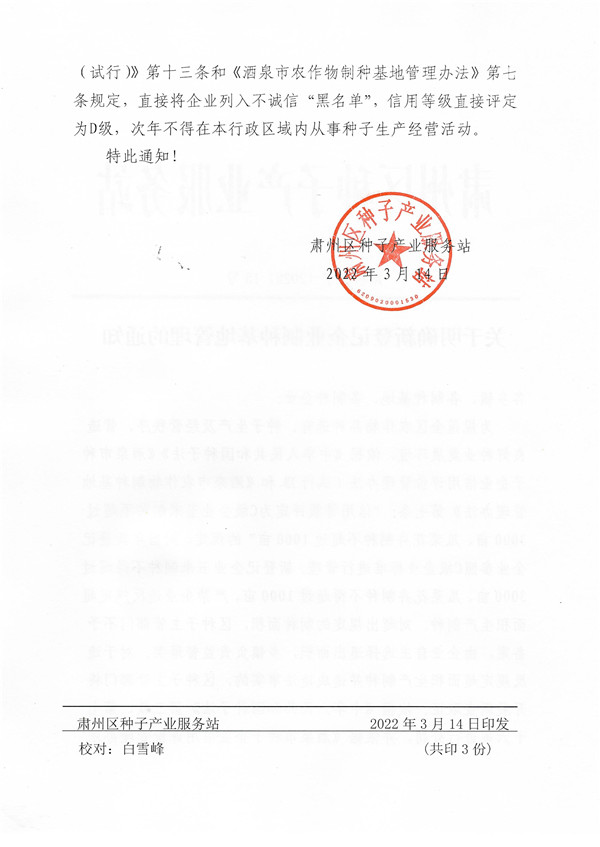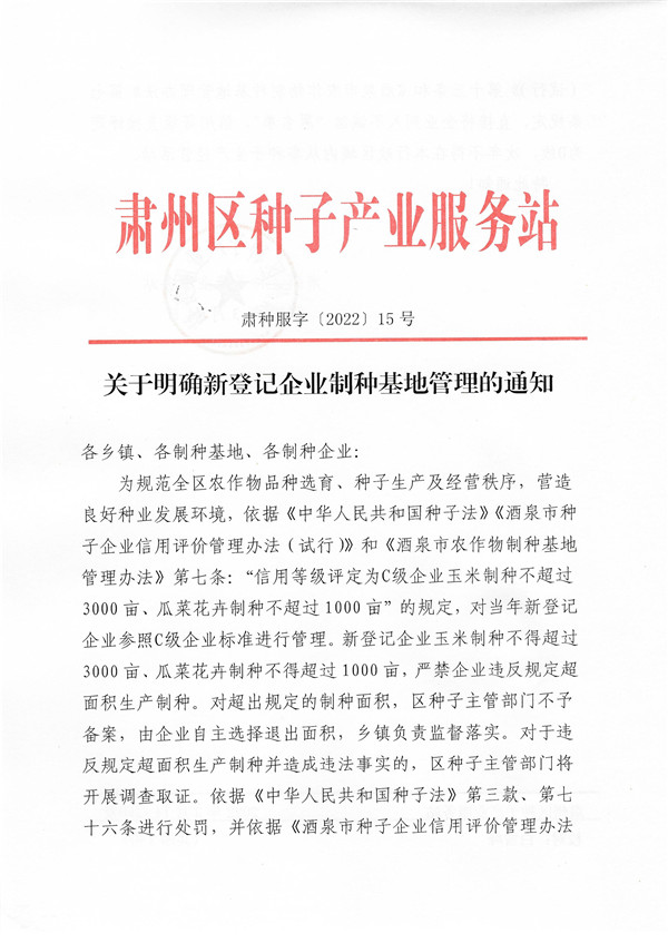 關(guān)于明確新登記企業(yè)制種基地管理的通知