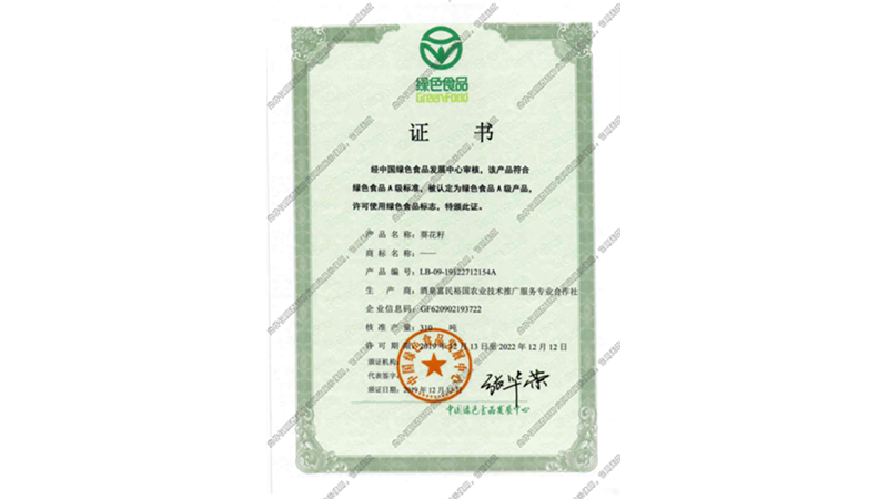 綠色食品證書_葵花籽
