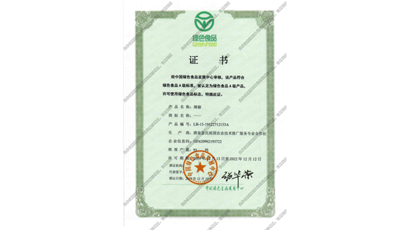 綠色食品證書_辣椒
