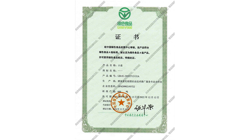 綠色食品證書_小麥